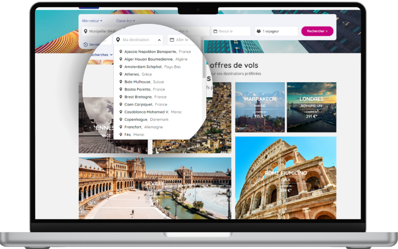 Dotate il vostro sito web di un motore di prenotazione voli semplice e intuitivo, interamente personalizzato con i vostri colori.